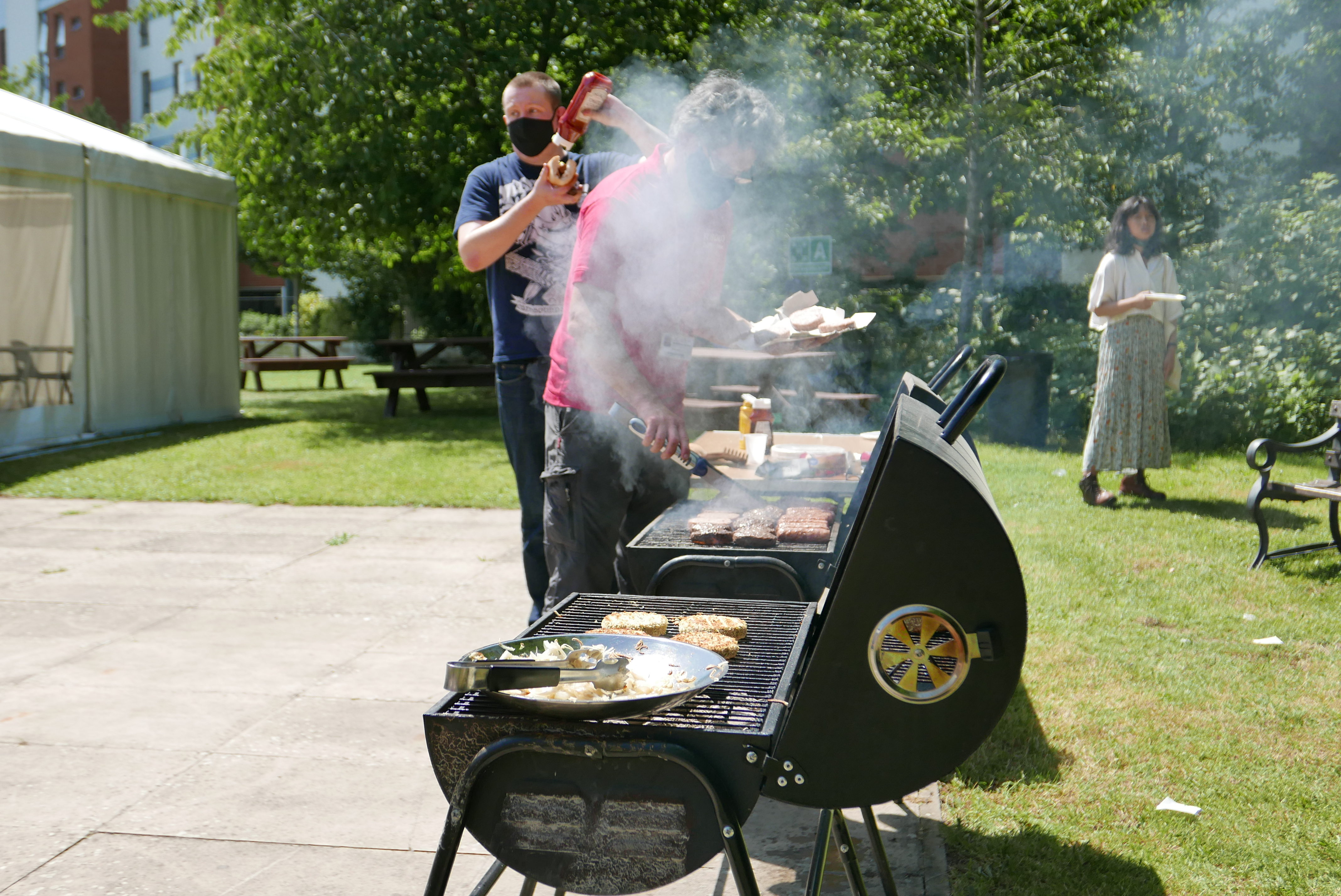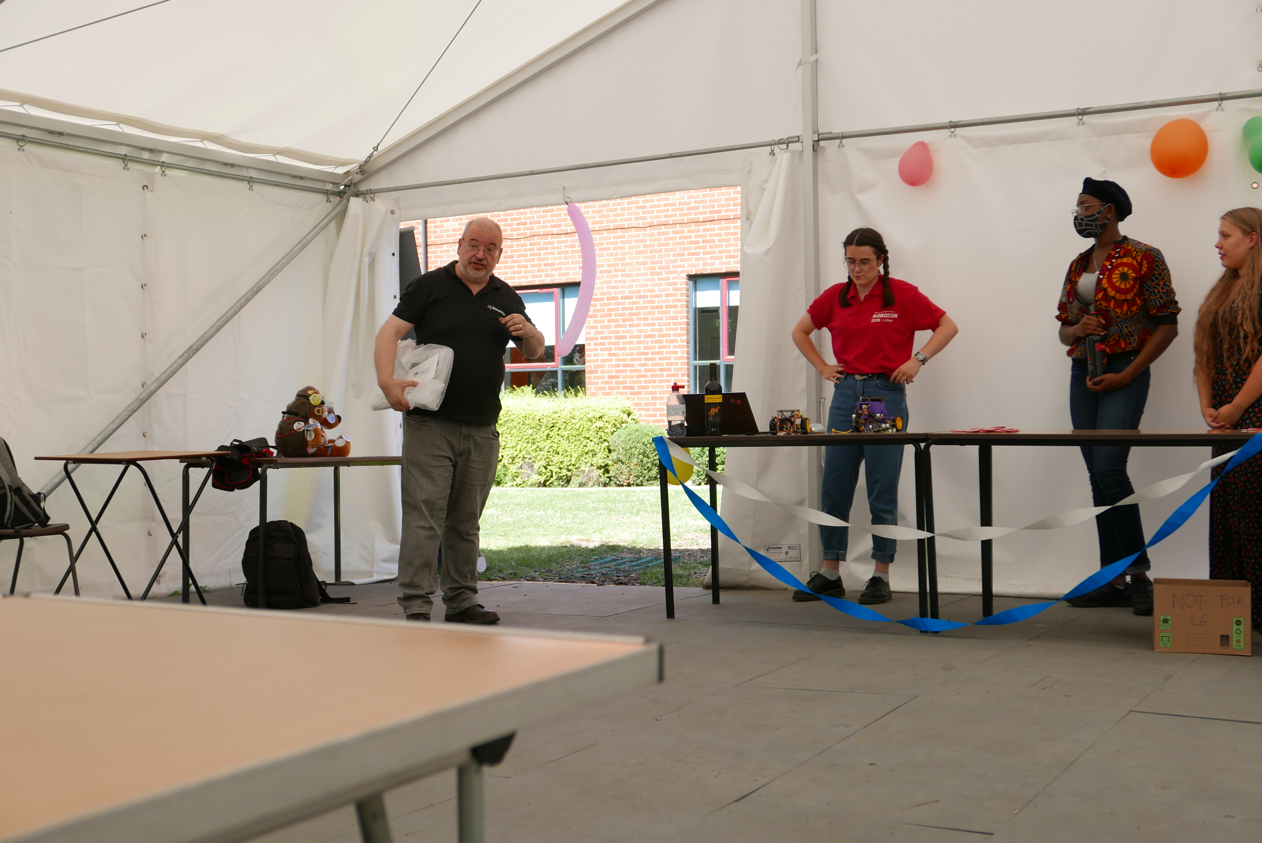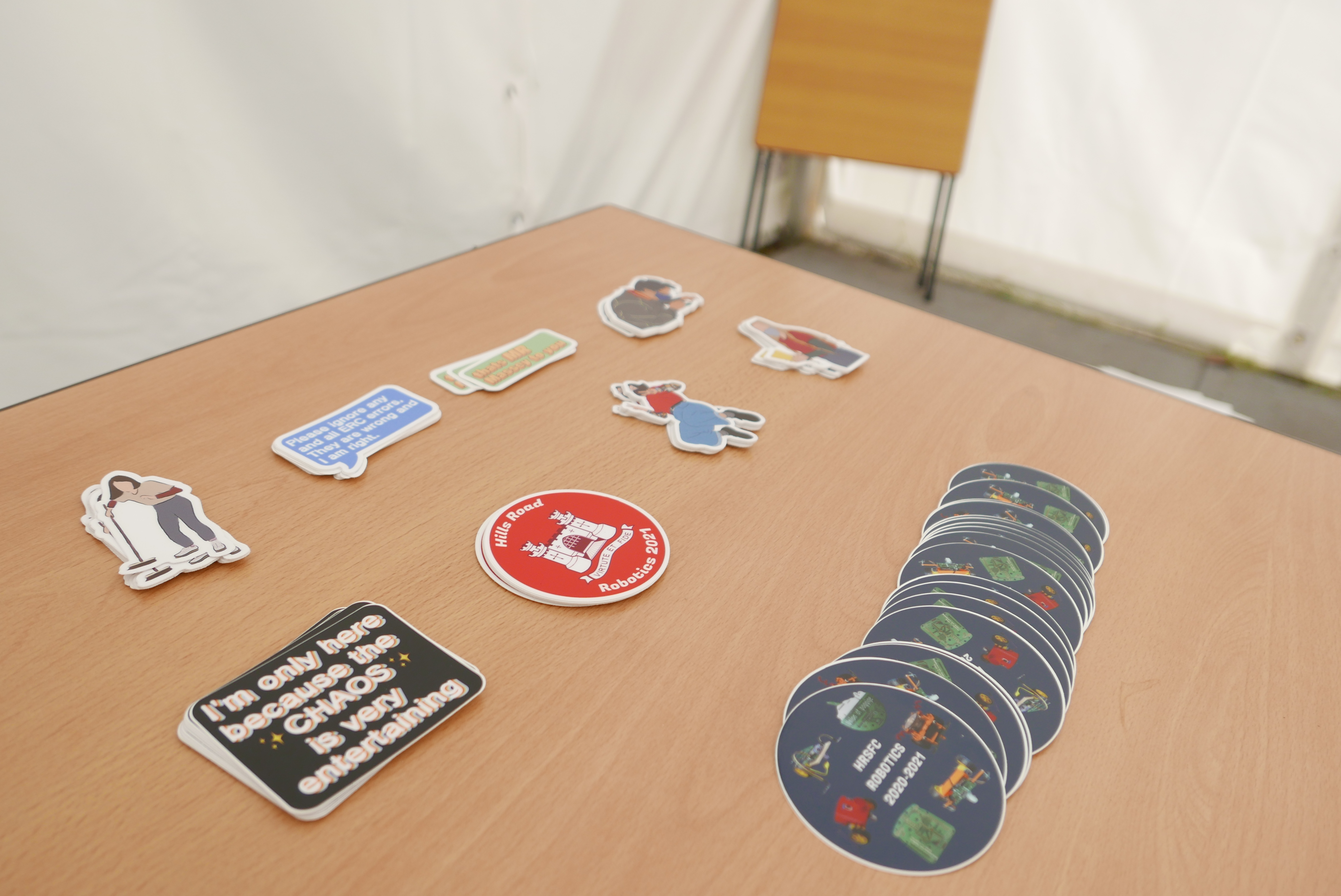 After the competition had been wrapped up, everyone made their way outside for a barbecue, as well as a chance to catch up with the alumni who had turned up, presumably for the free food. All of the robots were displayed for people to admire, along with a variety of badges and stickers created by the upper sixth.